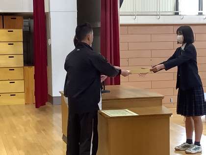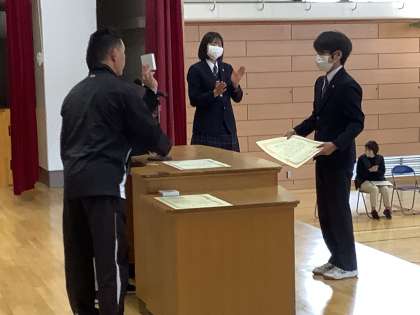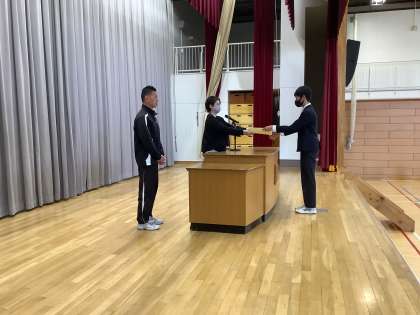 体育優良賞と産業奨励賞3名の表彰を行いました。おめでとうございます。これからの活躍も期待しています。