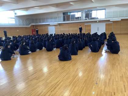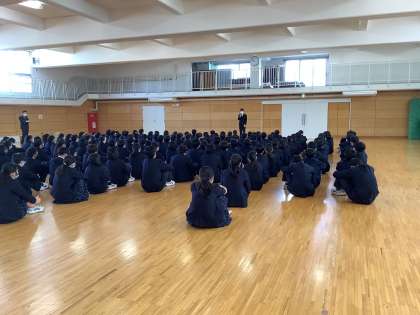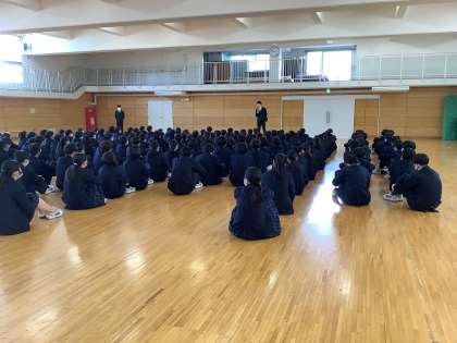 格技室で学年教員からの話をしました。パワーのある2年生なので、そのパワーを上手にコントロールして学習や行事を良くしていきましょう。