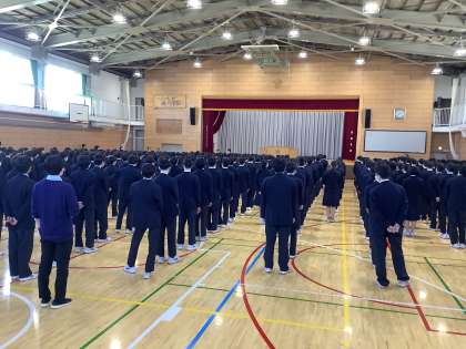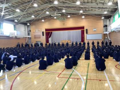 4年ぶりに体育館に全校生徒が集まりました。どの学年も静かに移動して、整列をすることができました。