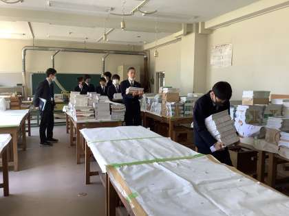 2年生は9冊の教科書を配布しました。教科によっては来年度も使用します。必ず記名してしっかり管理しましょう。