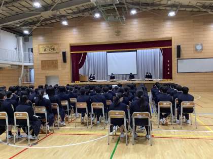 5・6時間目は、体育館で新入生オリエンテーションが行われました。2・3年生はZoom各教室で視聴しました。