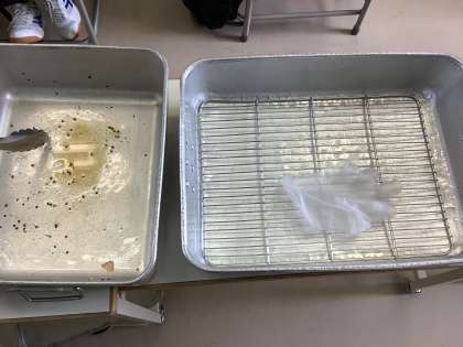 本日のメニューは、春の香りずし・すまし汁・鮭の南部焼き・りんごゼリー・牛乳でした。