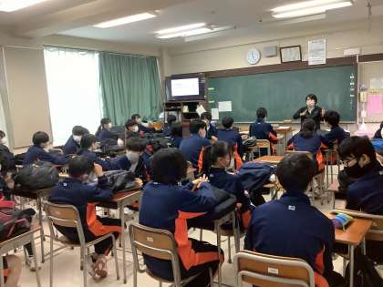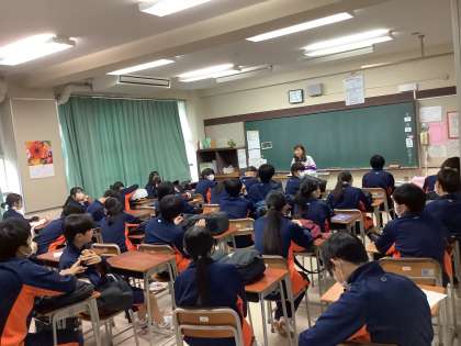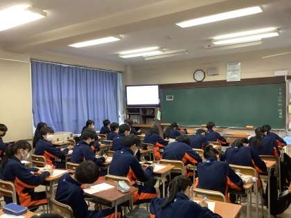 養護教諭から、生活習慣に関して「視力低下予防の生活」についての話がありました。ICT活用が当たり前の日常において、どのように目の健康を保つかなど日々の生活を見直して今後の改善点などを考えました。