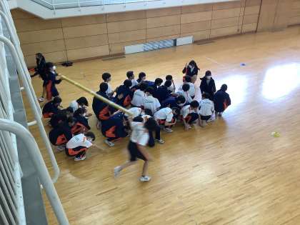 ダンス練習の次に、学年種目の「台風の目」の練習をしました。ルールの再確認もしました。