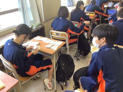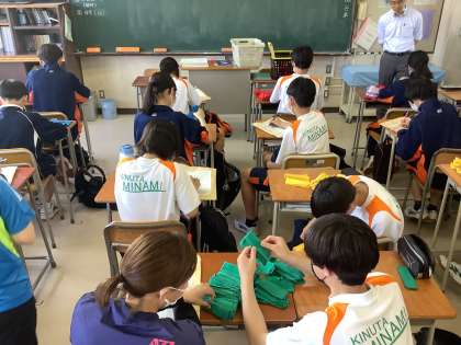放課後に生徒用のプログラムとはちまきを確認しました。