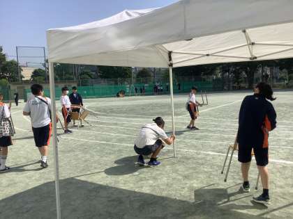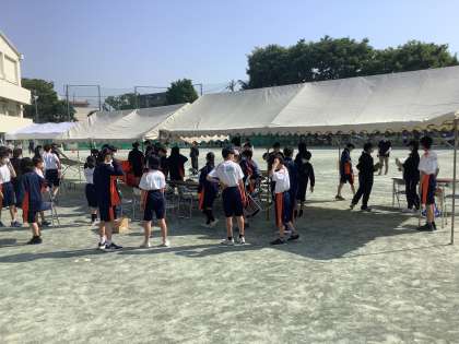 朝から準備をしています。今日は暑くなります。マスクを外し、水分補給をしっかりして取り組むようにしましょう。