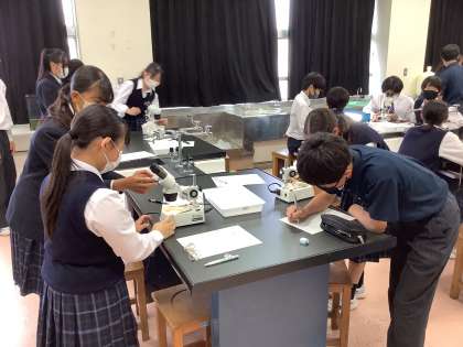 アスパラガスの茎の維管束の通り方の観察をしました。
