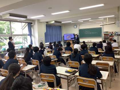 教育実習生が研究授業を行いました。「A I density〜AIと自分自身の価値」という単元で、AIの能力を理解し、自分たち自身にしか表現できない世界があるということを学習しました。