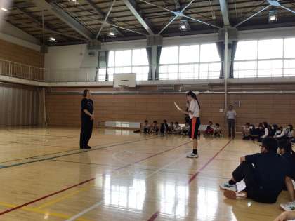 選手時代の話やバスケットボール体験などを通して、努力すれば夢は叶うことを学びました。