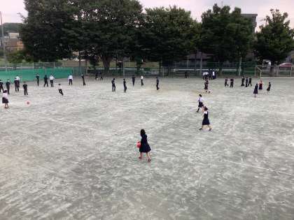 小雨が降り始めましたが、生徒たちは元気に外で遊んでいました。