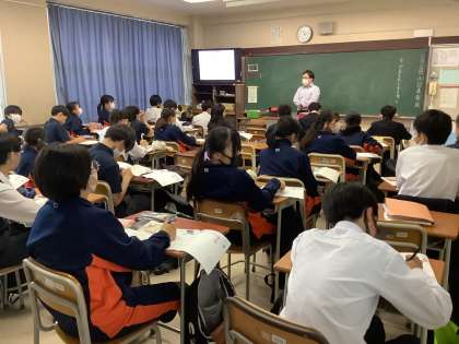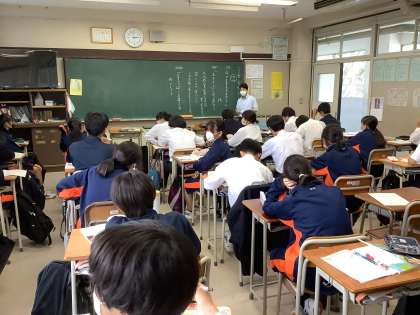 2年生は「命の尊さ」を考える文章を読みました。東日本大震災の悲惨さから当たり前の毎日を過ごせる幸福について考えたり、生命誕生の喜びについて意見を述べました。