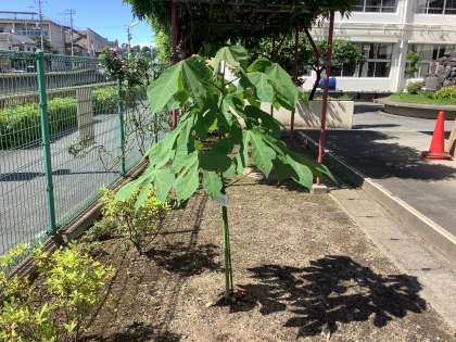 主事さんが手入れしている植物や2021年度に修学旅行先の広島でいただいた「アオギリ」が元気に育っています。