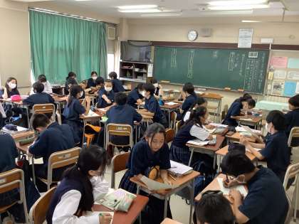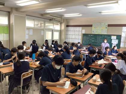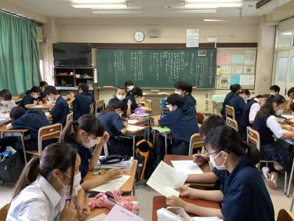 東京都の課題作文「第32回明日のTOKYO作文」に取り組み始めました。今年のテーマは「身近な東京の食を振り返る」です。自分の考えを書きだしてから、グループ活動を行い意見交流をしました。