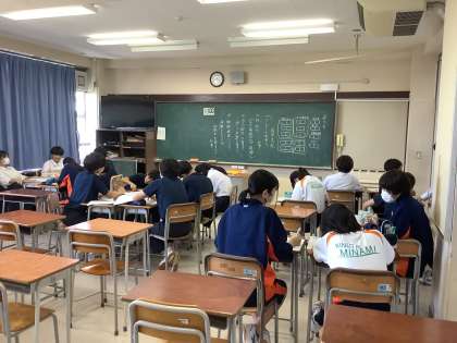 本日職場体験場所の発表をしました。各グループに分かれて、リーダーを決めました。体験場所の住所の確認をしたり、体験場所に渡す自己紹介カードの下書きを書いたりしました。