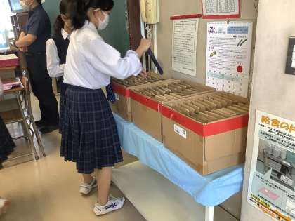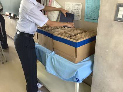 2年生は安心安全に利用することに課題があったため、毎日iPadを回収しています。授業で使用するときは、教員が教室に運んで使用しています。