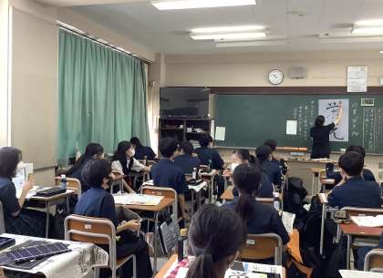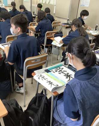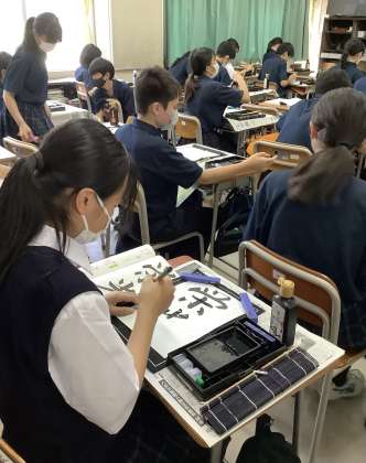 汚れが目立たないよう、ほとんどの生徒がポロシャツを着てきたり習字用エプロンを着たりして取り組みました。
