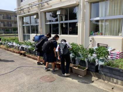 2年生は先日から技術で育てたシシトウを持ち帰っています。