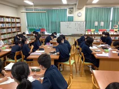 先週の「セーフティ教室」で学んだ薬物乱用防止について思い出しながら、「みんなが薬物を利用せず、健康な体と心を保てるような標語を作ろう」を目標に、標語作りをしました。
