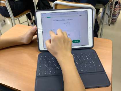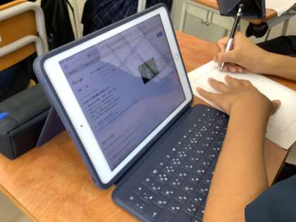 調べ学習や、レポート作成、学習アプリ「キュビナ」など、iPadを活用した学習を行っています。