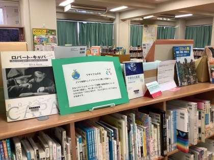 図書館の各コーナーはいくつかありますが、場所によっては1週間ごとに変わっています。今回は「リサイクルコーナー」でした。来週はどんなコーナーになっているか、ぜひ見に来て下さい。