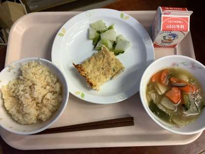 今年最初の給食はお正月や1月11日の鏡開きにちなんだ献立でした。