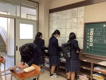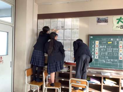 学芸発表会(展示部門)に向けて、展示物を掲示しやすいように準備をしています。