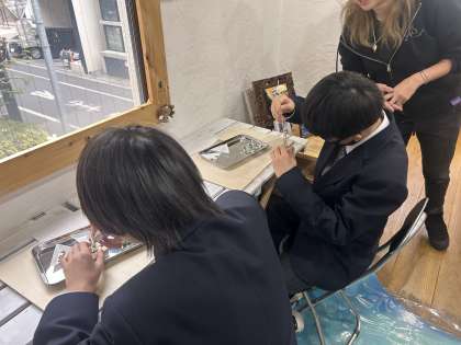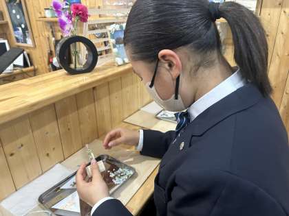 この班では海のゴミになったシーグラスでボールペンを作っていますね!