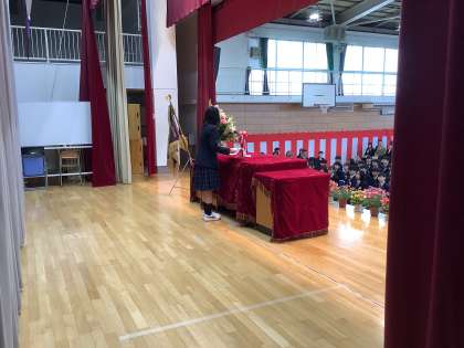 在校生から新入生を歓迎する言葉、新入生からは中学校生活に対する思いを語る言葉がありました。みんなで素敵な中学校生活にしていきましょう。