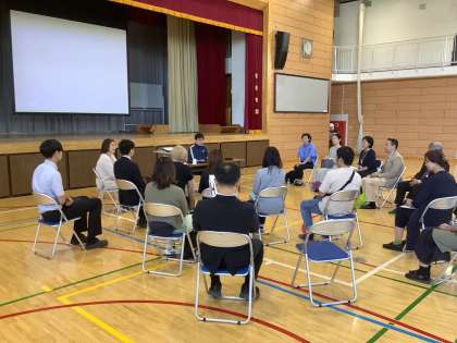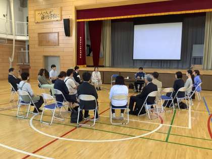 講演会後に、講師と保護者・教職員と交流会を行いました。道徳の各項目について教員から説明したり、保護者の質問に萩原先生に答えていただいたりしました。