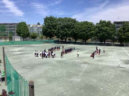 3年生の学年種目は大縄です。保健体育の授業で練習に取り組んでいます。3分間で累計回数を競います。練習次第で跳べる回数は増えるので、ぜひ協力し合って頑張りましょう。