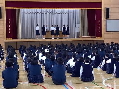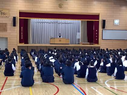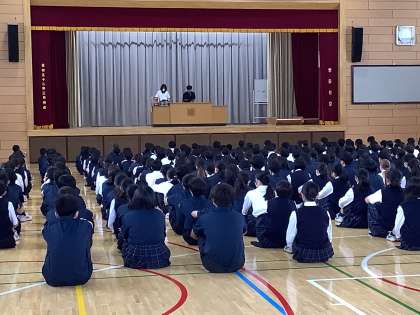 生徒会から、体育祭にみんながよく取り組めて成功させることができたことや、服装について・傘の管理についてなどの話がありました。整美委員から「美化コンクール」についての話がありました。