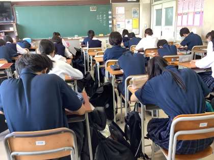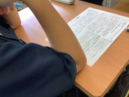 2年生は、新聞の社説を読み要約文を考えたり感想を書いたりする取り組みをしています。今回は「富士山入山規制」についての内容でした。