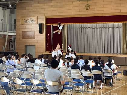 体育館では、後半にSETAGAYA PINKY’S(チアリーディング)の技と踊りのしょーが披露されました。最後には希望者がリフトしてもらいました。