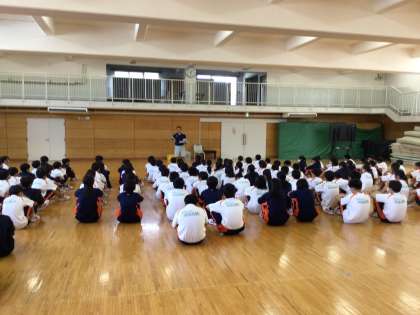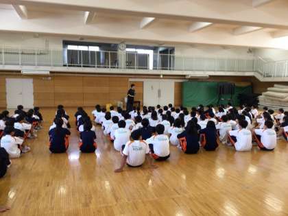 本日9月4日の5時間目に1年生の学年集会が行なわれました。内容は,河口湖での移動教室などの学校行事に向けて,どういった行動をとるべきなのかといった内容でした。みんなとても熱心に話を聞けていました。