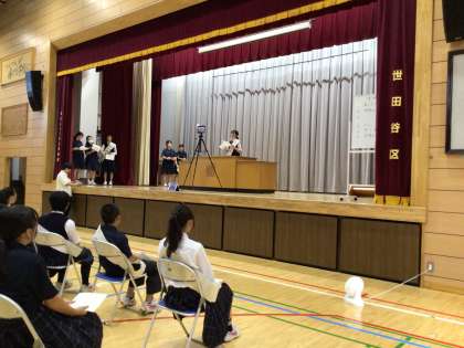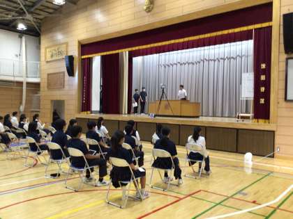 9月13日、生徒会役員選挙が行われました。立候補者が決意表明を語り、生徒達はIpadで広報誌を確認しながら、立候補者の話と応援演説を聞きました。