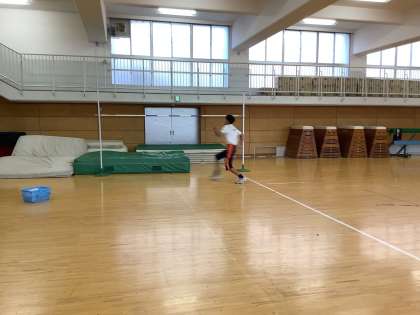 放課後、区陸に出場する生徒の自主練習を行いました。短距離選手はスパイクを試して練習に取り組みました。