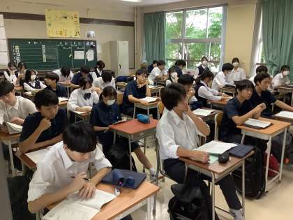 各クラスでしおりの読み合わせをしました。昨夜から「健康観察カード」の記入もしています。毎日の体温や睡眠時間・排便状況などをしっかり記入して提出しましょう。