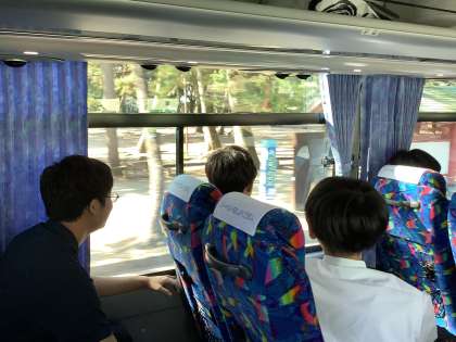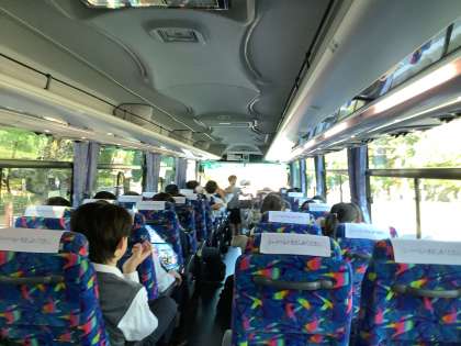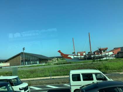 お宿の三笠からバスで移動しました。途中遣唐使の船を発見しました。