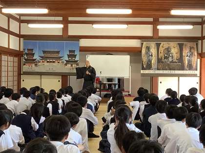 お坊さんの法話がとても楽しく、ためになりました。今日聞いた話を活かして、面倒がらずに面を上げて「面白い」人生にしましょう!
