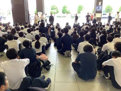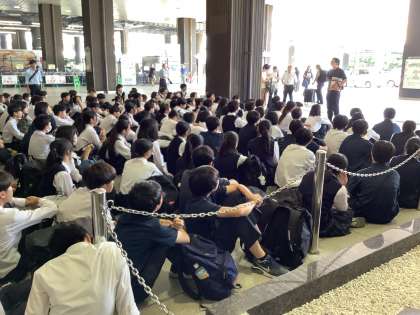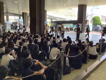 奈良から新大阪に移動して、新大阪で一足先に解散式をしました。校長先生や学年主任の先生・実行委員から良かった点や反省点・これからについてなど話がありました。そして、三日間お世話になった旅行会社の人にお礼の言葉を伝えました。