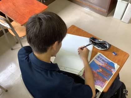 三日間を振り返り、A3サイズの用紙に学んだことや感じたことをまとめます。作品は1月の学芸発表会に展示されます。