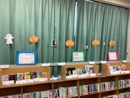 読書の秋、勉強の秋です。学校図書館は「学習センター」としての役割もあります。ぜひ勉強しに来てください。只今、ハロウィン仕様になっております。
