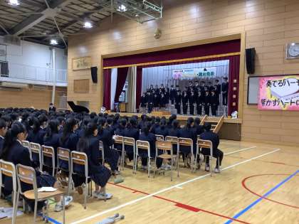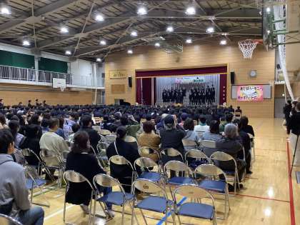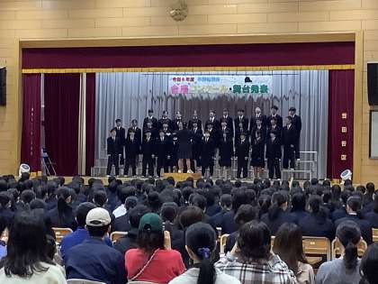 午前は、1年・2年・3年の順に課題曲と自由曲を披露しました。どのクラスも今までの練習の成果を発揮していました。夏休みから練習していた指揮者・伴奏者の人たちも素敵な演奏でした。