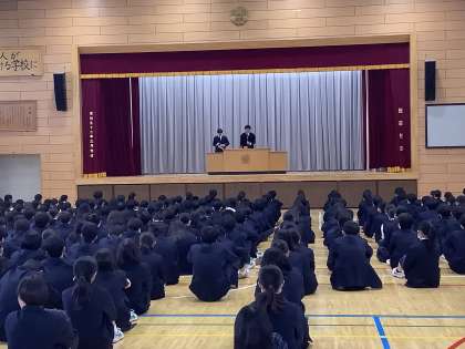 また、生徒会から、落ち葉はきボランティアと授業コンテストについての話がありました。