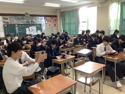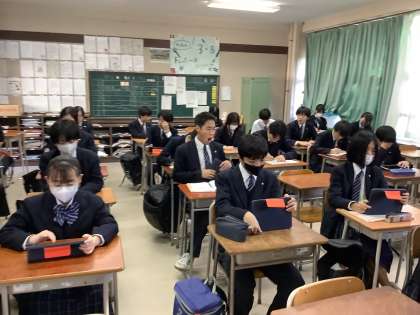 各学年で学校評価アンケートに取り組んでいます。iPadを利用してのアンケート回答も慣れてきました。ただ、iPad忘れや充電忘れの生徒もいます。授業でも使用しますので、必ず十分に充電したiPadを持ってくるようにしましょう。