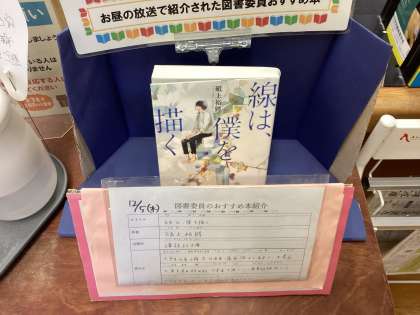 毎週火曜・金曜の昼の放送で「図書委員のおすすめ本紹介」を放送委員が読み上げています。新刊も入りました。興味を持った人はぜひ借りに来て下さい。