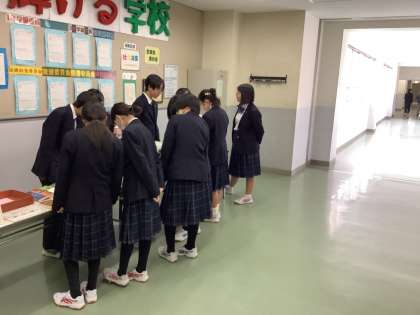 毎月恒例の移動図書館を行いました。多くの生徒が見にきていました。