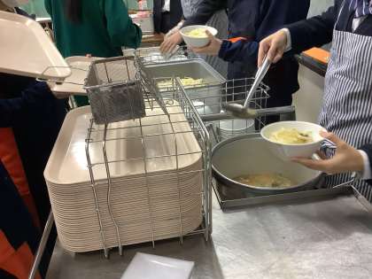 午前から、今日のメニューのついて生徒の話題になっています。年末年始は特に行事にちなんだメニューがありました。