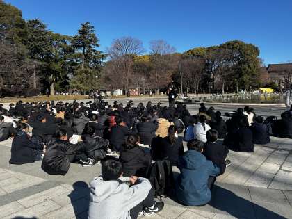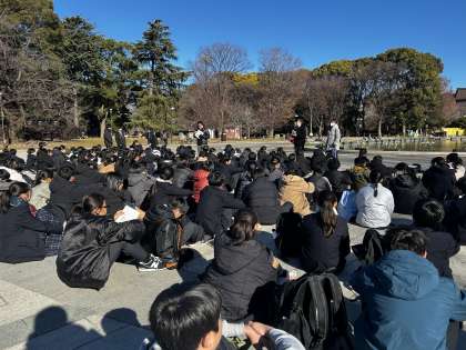 電車遅延などのトラブル乗り越え、時間通りに上野公園大噴水前に着きました!