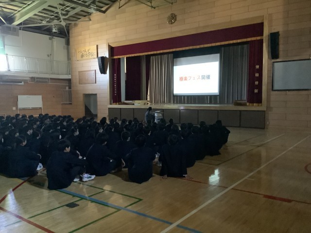 また、今まで行ってきた学年レクを進化させ、生徒が企画して取り組むという計画の発表がありました。3学期は集大成の「極楽フェス(仮)」が実施されます。自分たちで企画し実施する「フェス」、楽しみですね。